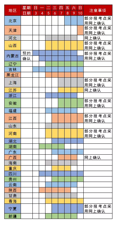 现场确认具体时间、要求由各省级教育招生考试机构根据本地区报考情况自行确定和公布。小编给大家汇总了各省的现场确认时间,总的来说是11月3~10日。