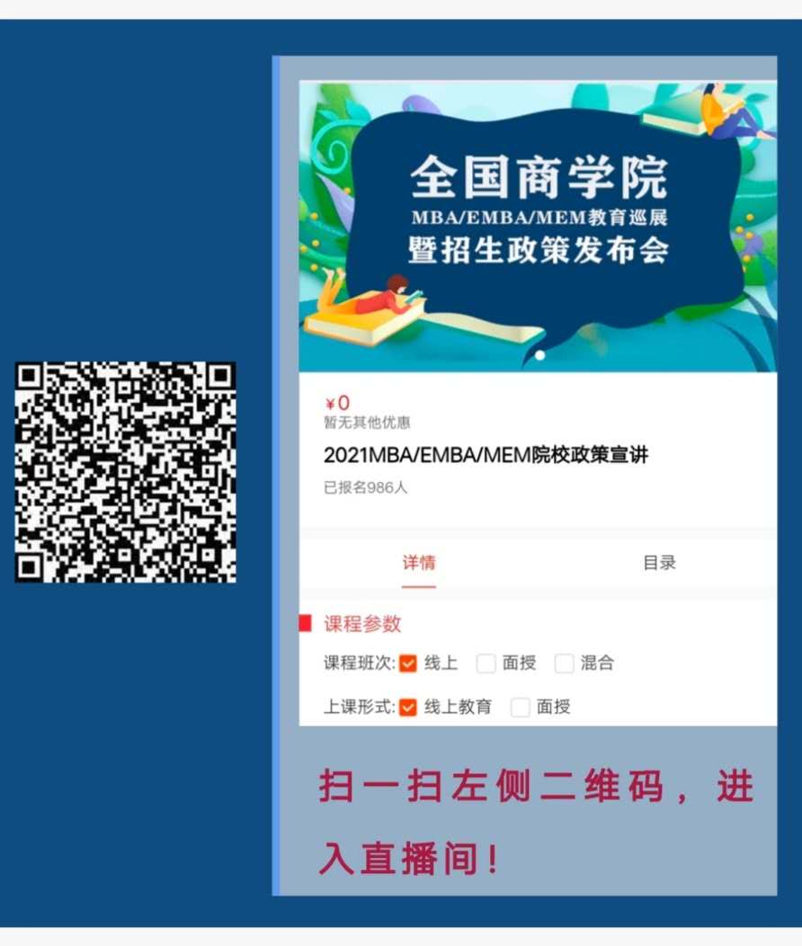 2021全国商学院MBA/EMBA/MEM教育巡展暨招生政策发布会(在线直播)