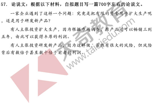 2017年MBA管理类联考综合写作真题:论说文