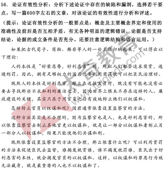 2017年MBA管理类联考综合写作真题——论证有效性分析