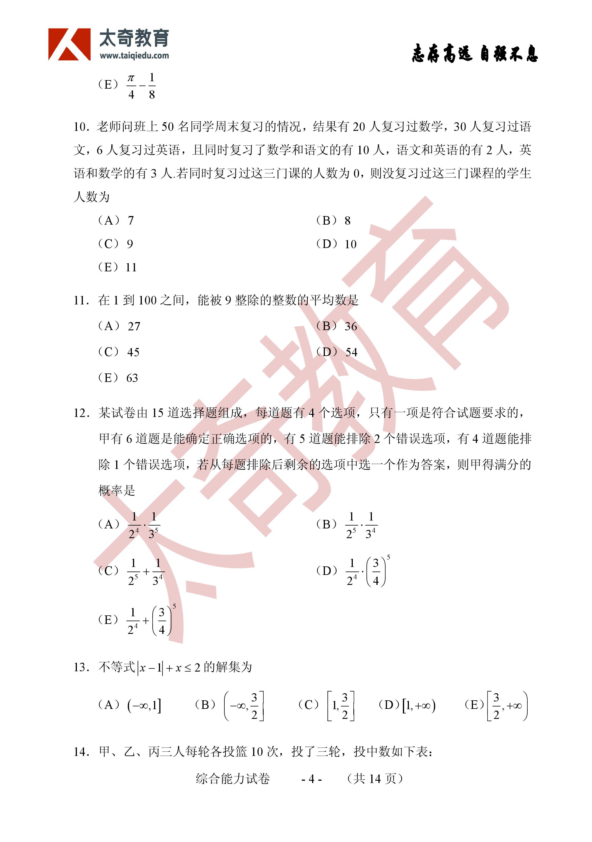 2017年MBA联考数学真题参考答案:问题求解(3)