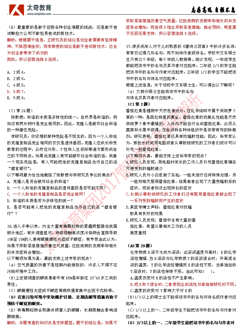 祝贺太奇教育2017管理类联考逻辑直接命中46分(4)