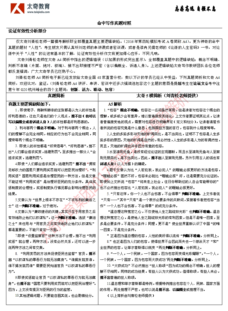 祝贺太奇教育2017管理类联考写作真题“神”命中