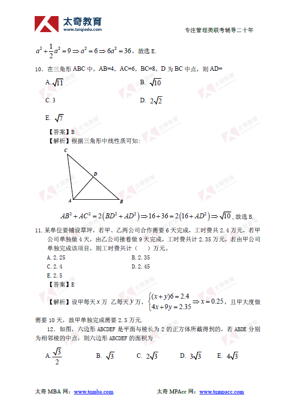 2019年MBA/MPAcc管理类联考数学真题及答案(4)