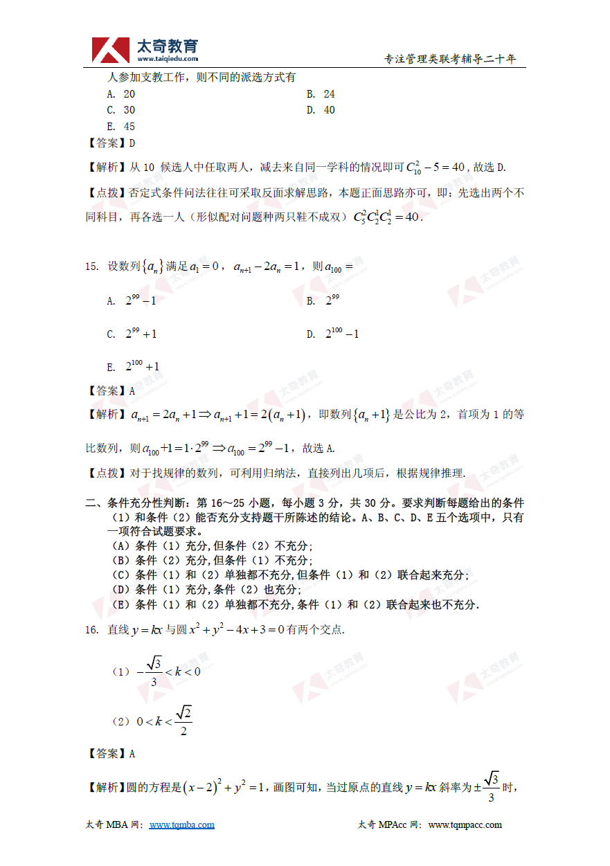 2019年管理类联考数学真题+解析(太奇官方版)(6)