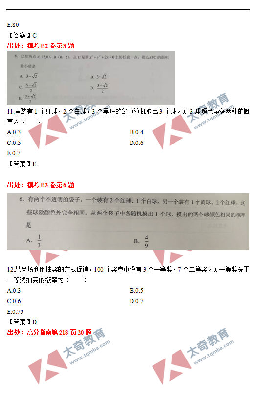 太奇2021年MBA管理类联考数学真题命中对照(5)