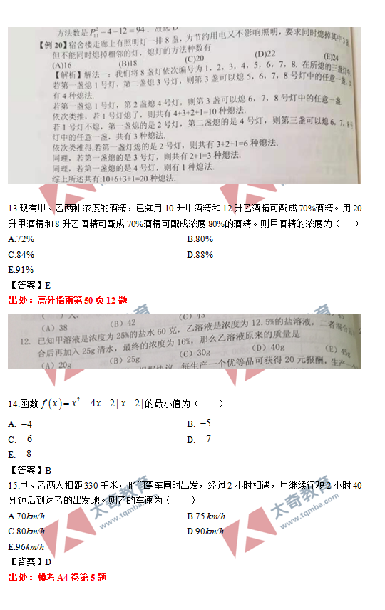 太奇2021年MBA管理类联考数学真题命中对照(6)