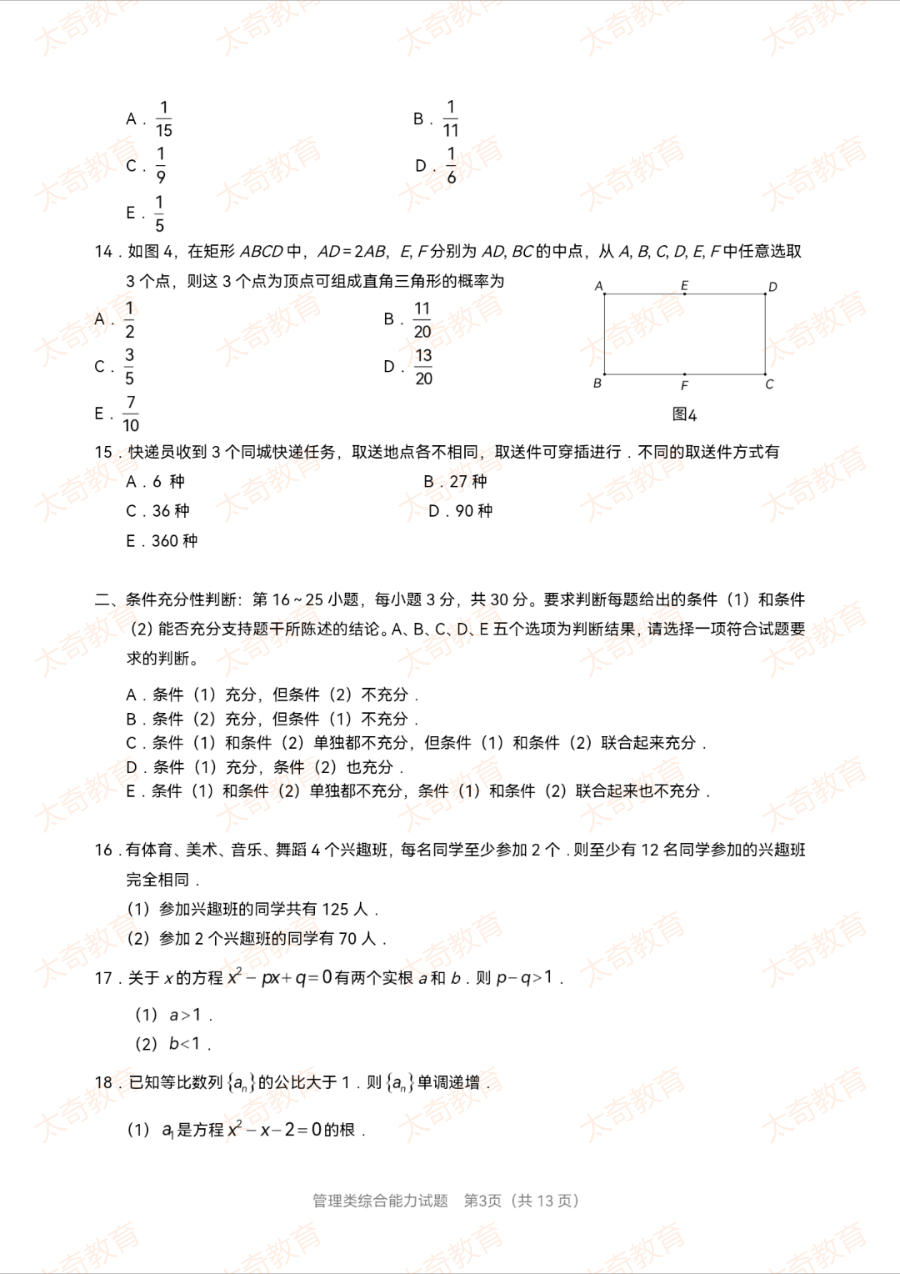 2023年MBA管理类综合真题(一)