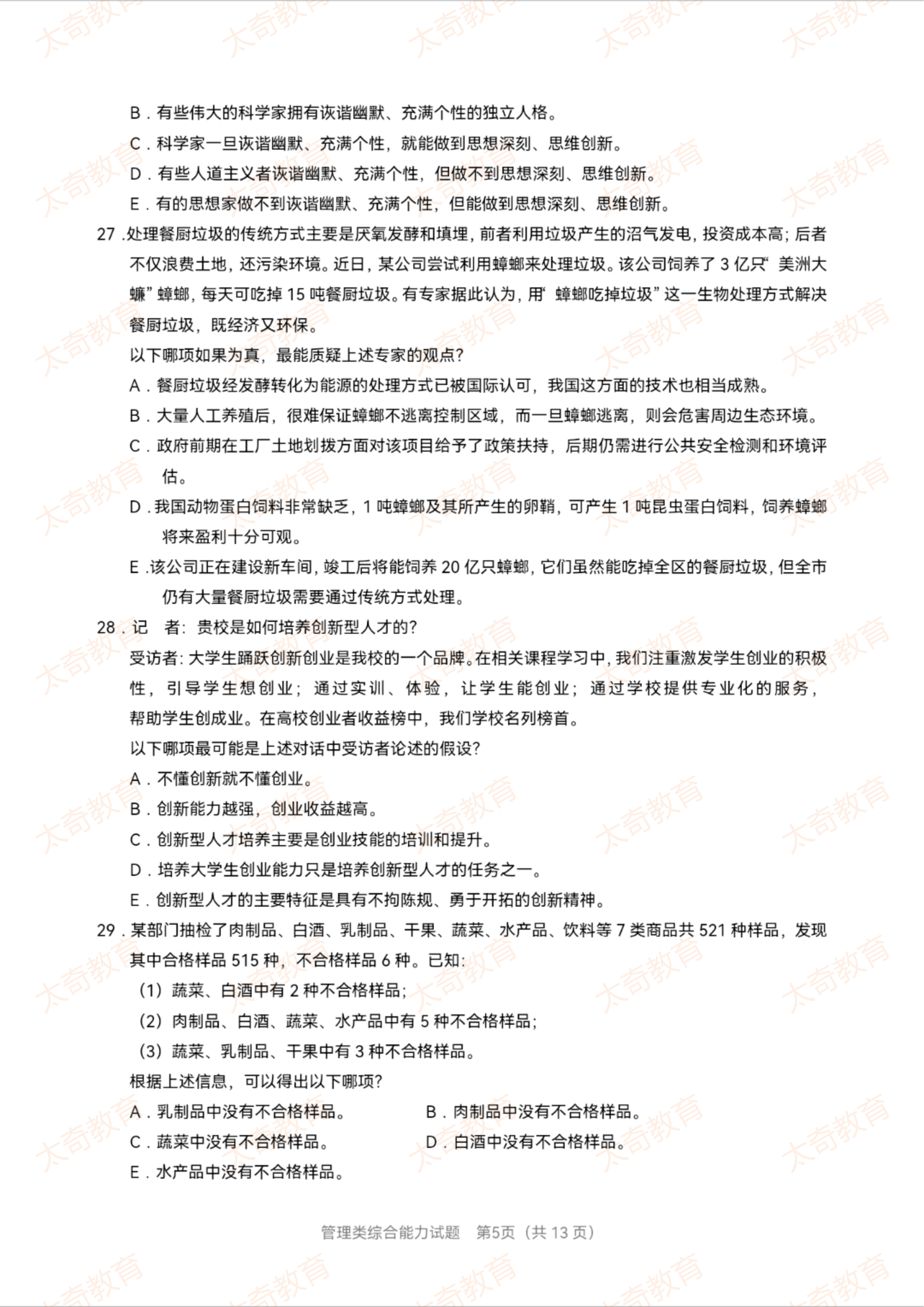 2023年MBA管理类综合真题(二)