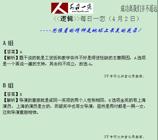 【太奇MBA 2014年4月2日】 MBA逻辑每日一练