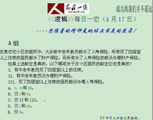 【太奇MBA 2014年4月17日】 MBA逻辑每日一练