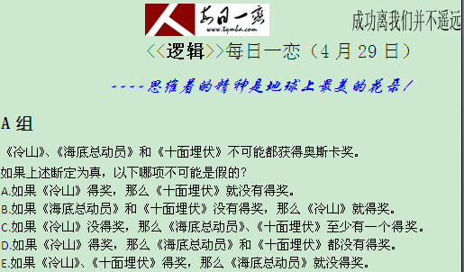 【太奇MBA 2014年4月29日】 MBA逻辑每日一练