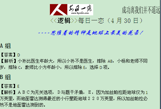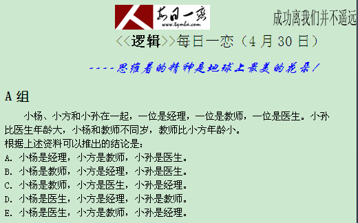 【太奇MBA 2014年4月30日】 MBA逻辑每日一练