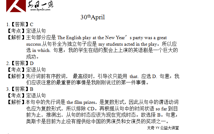 【太奇MBA 2014年4月30日】 MBA英语每日一练
