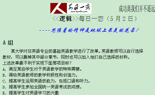 【太奇MBA 2014年5月1日】 MBA逻辑每日一练