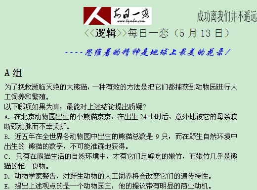 【太奇MBA 2014年5月14日】 MBA逻辑每日一练