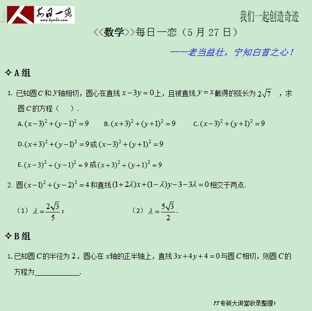 从本周一(5月26日)开始,每日一“恋”各科不再发放详解,相关题目解析每周在太奇YY大讲堂由老师进行统一讲解,每周课程在太奇YY大讲堂万人备考群进行公布,YY群号:9444754 YY听课频道:57378066