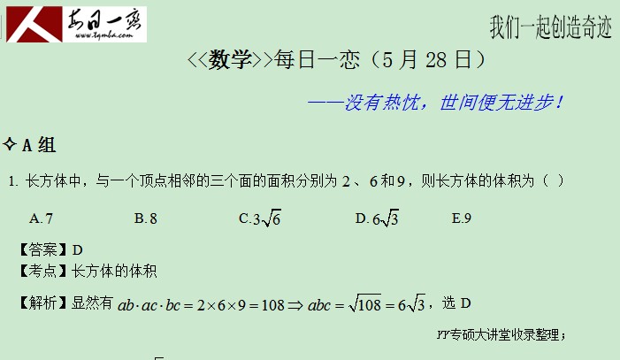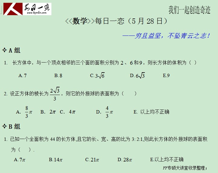 从本周一(5月26日)开始,每日一“恋”各科不再发放详解,相关题目解析每周在太奇YY大讲堂由老师进行统一讲解,每周课程在太奇YY大讲堂万人备考群进行公布,YY群号:9444754 YY听课频道:57378066