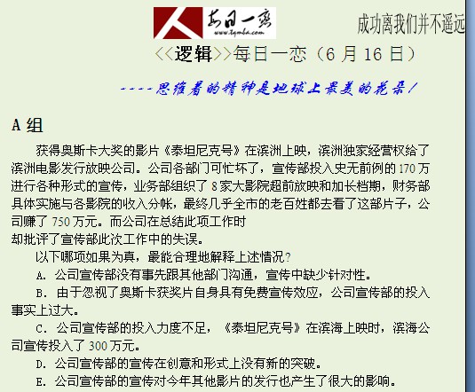【太奇MBA 2014年6月16日】 MBA逻辑每日一练