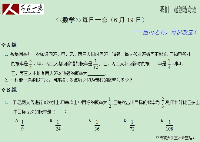 【太奇MBA 2014年6月19日】 MBA数学每日一练