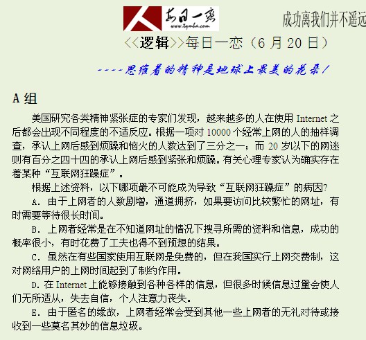 【太奇MBA 2014年6月20日】 MBA逻辑每日一练