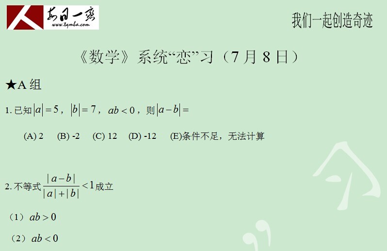 【太奇MBA 2014年7月8日】 MBA数学每日一练