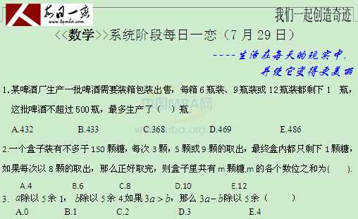 【太奇MBA 2015年7月29日】MBA数学每日一练
