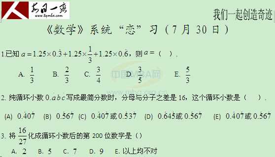 【太奇MBA 2015年7月30日】MBA数学每日一练