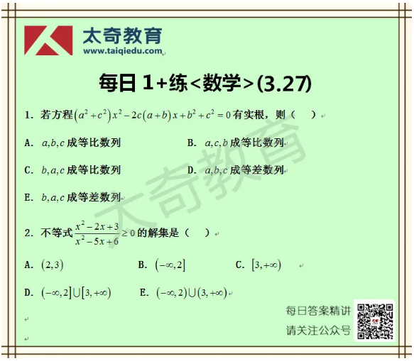 太奇MBA管理类联考数学每日一练 3-27