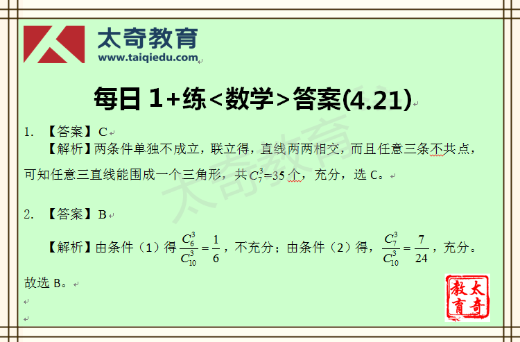 太奇MBA管理类联考数学每日一练 4-21