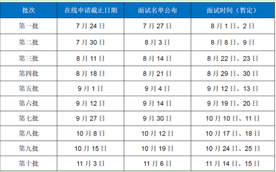 提前面试政策第一版日程安排