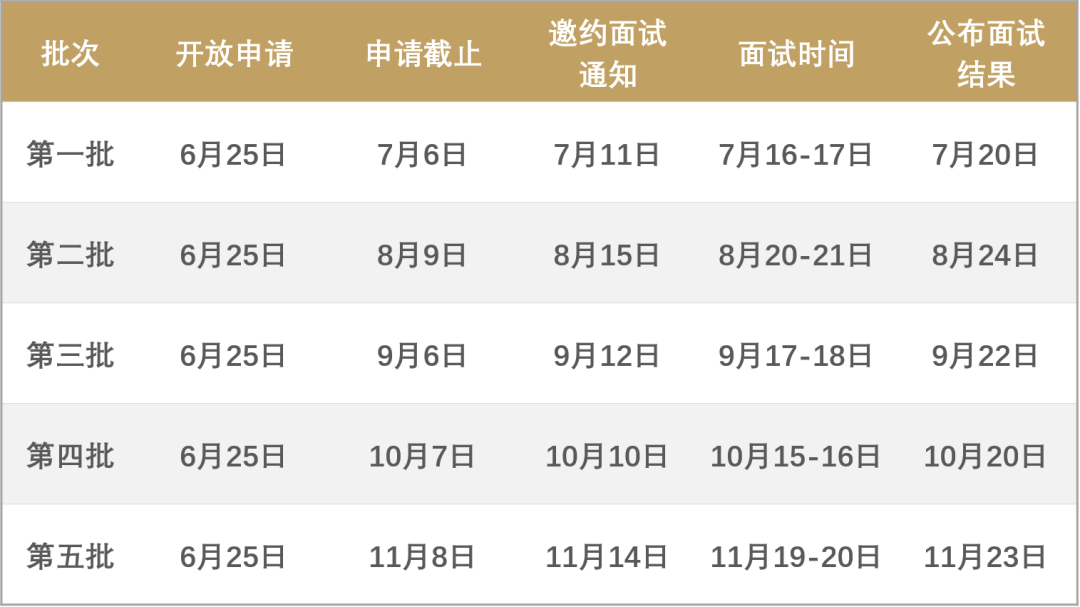 3、当前批次未获得面试资格的考生,可继续申请后续其他批次,但每位考生当年只能参加一次提前面试。