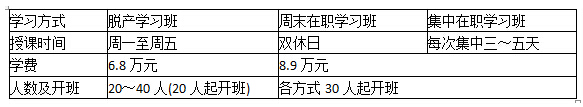 学习方式 脱产学习班 周末在职学习班 集中在职学习班
