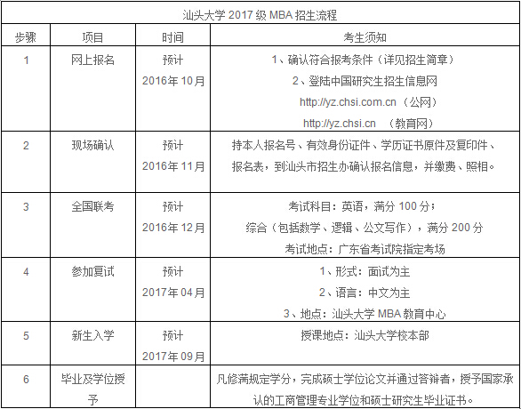 汕头大学2017年工商管理硕士招生简章