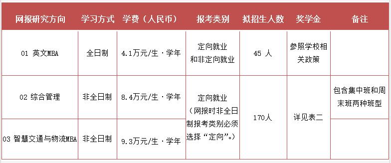 表一:2022年北京交通大学工商管理硕士招生人数及学费标准