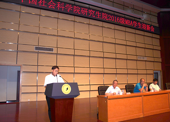 9月3日上午,中国社会科学院研究生院2016级工商管理硕士迎新会在我院顺利举行。我院院长、MBA教育中心主任黄晓勇教授,MBA授课教师代表、校内导师代表、特聘导师代表出席了迎新会。MBA教育中心全体员工、2015级MBA同学代表、2016级MBA新生参加了迎新会。出席迎新会的各大新闻媒体有:中国MBA网、中国MBA教育网、MBA中国网、腾讯网、新浪商学院和新华网。迎新会由我院MBA教育中心执行副主任赵卫星主持。