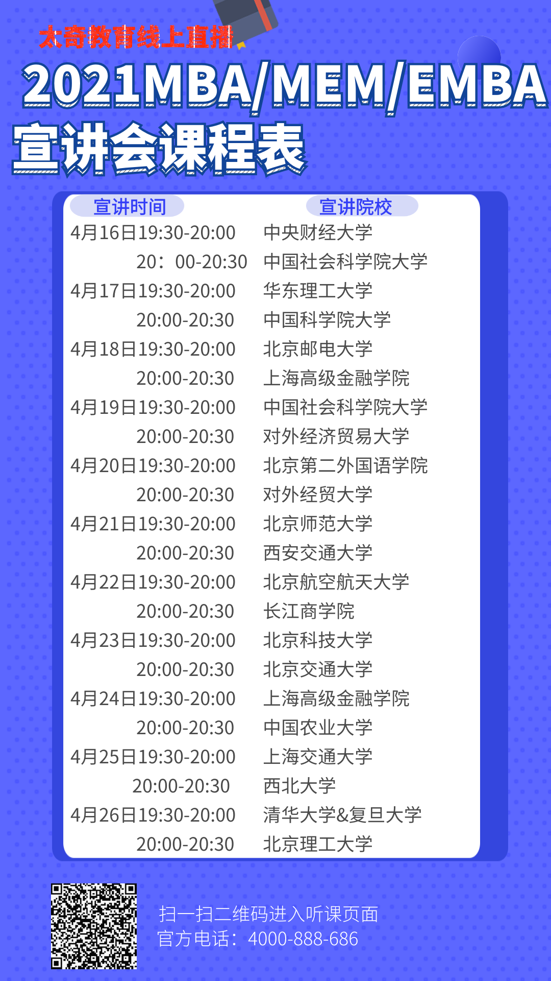 2021年全国MBA/MEM/EMBA院校宣讲会课程表