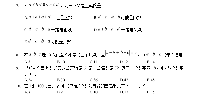 【数学】太奇MBA2021年基础班数学周测一