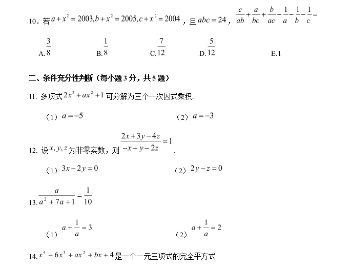 【数学】太奇MBA2021年基础班数学周测二